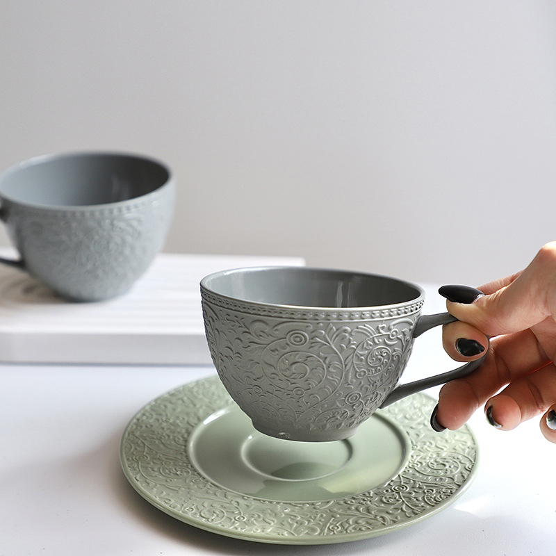 Vintage Embossed Ceramic English Afternoon Tea Cup with Plate